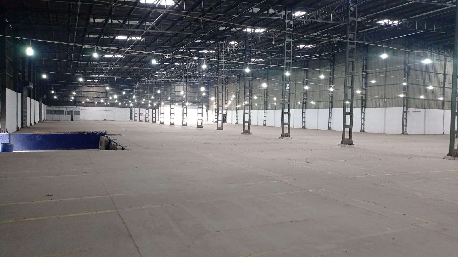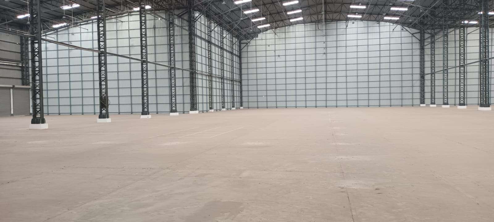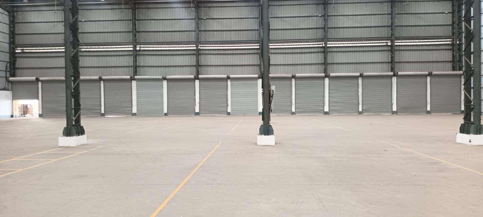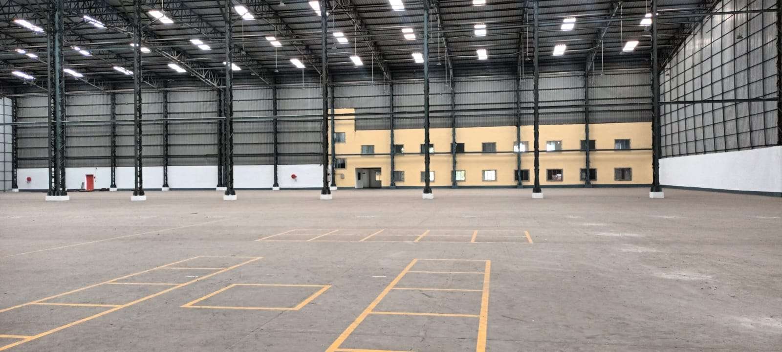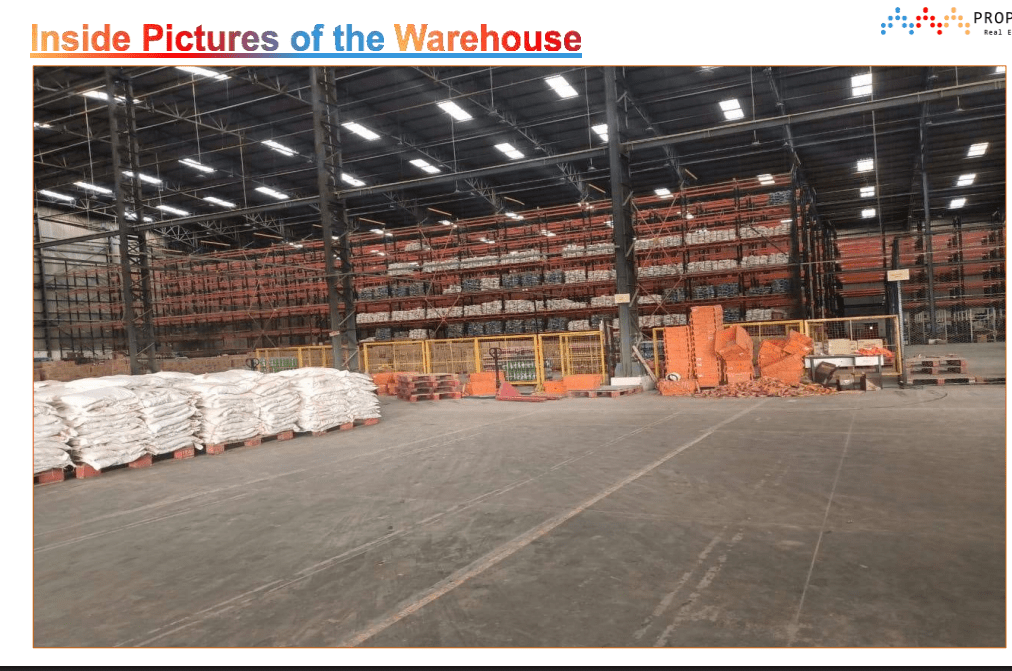 Total Warehouse Carpet Area: 90,000 sq ft Office Space: 2-floor office building, 3,031 sq ft per floor Emergency Exits: Minimum 4 Main Road Width: 80 ft Entry: Wide gated entrance Construction Type: PEB with VDF flooring Fire-Fighting Infrastructure: Hydrants, water storage, emergency features Security: Security cabin and visitor room Lighting: Common area lighting Rental Rate: ₹25 per sq ft